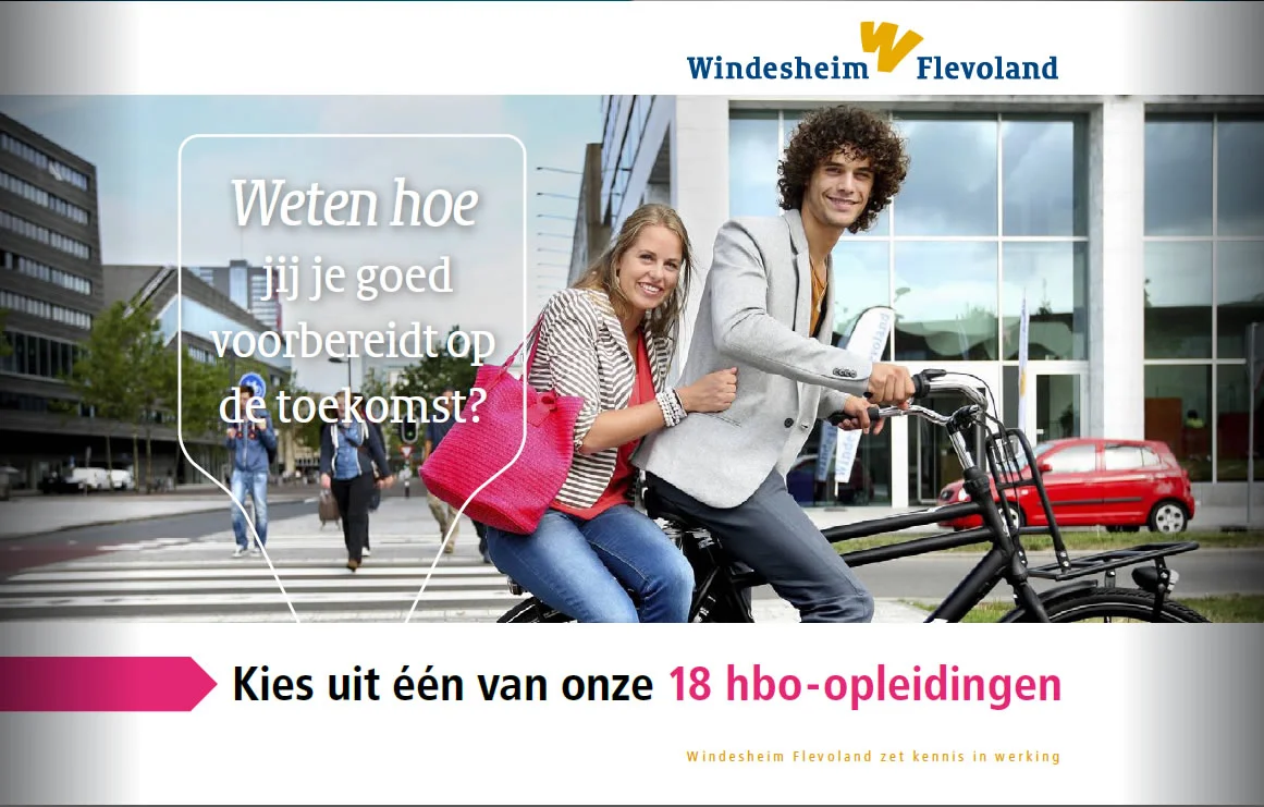 In samenwerking met een merkenbureau heb ik het nieuwe communicatieconcept ontwikkeld voor Windesheim Flevoland. Als icoon is gekozen voor een pin in de vorm van een plantensteker (daarop staat altijd praktische informatie hoe je de plant moet laten groeien) en deze te combineren met maatschappelijke en praktische vraagstukken die beginnen met "Weten hoe..." . Tijdens een studie bij Windesheim Flevoland leer je namelijk deze vraagstukken oplossen en groei je uit tot een professional. Bovenstaand de opleidingsgids waar het concept praktisch is toegepast.